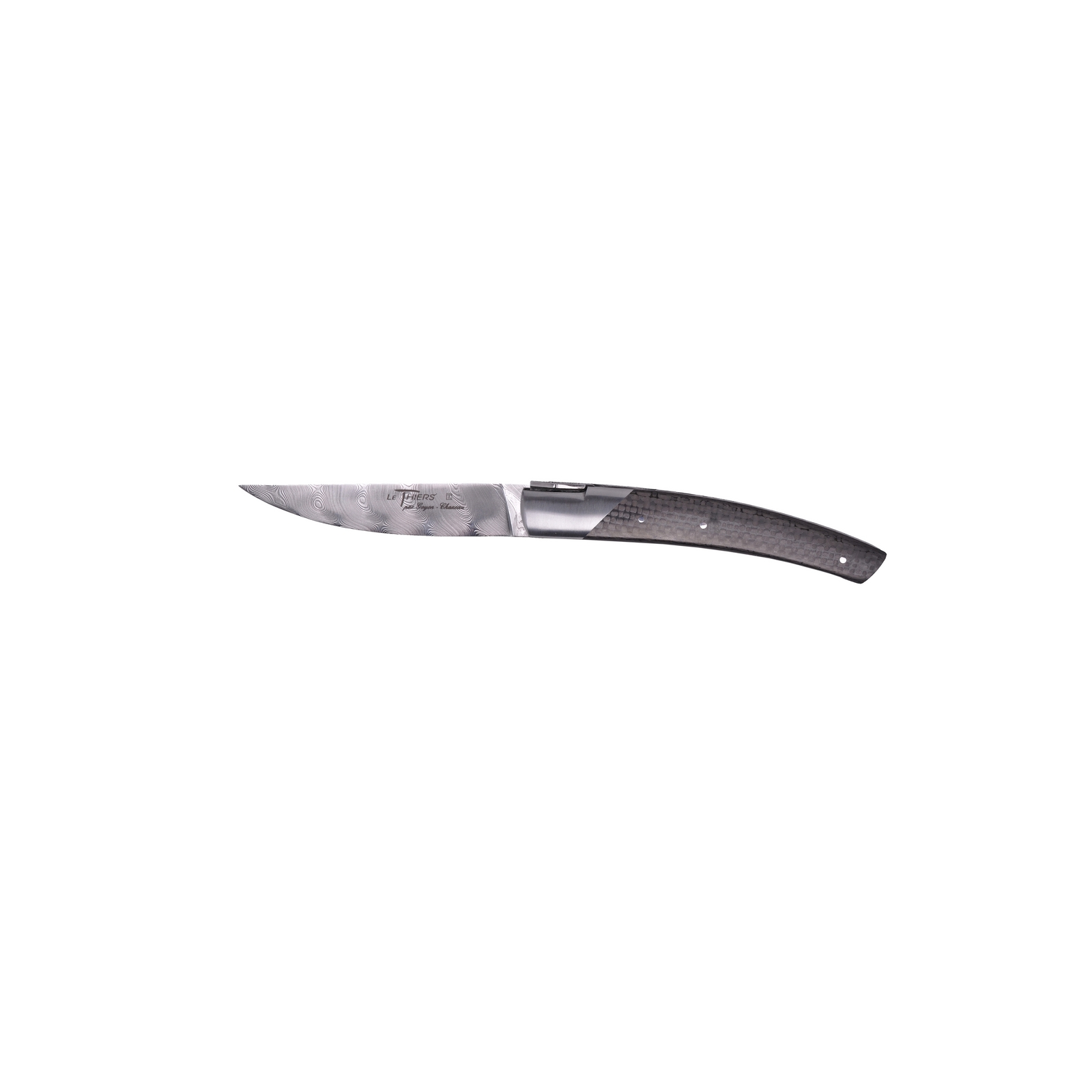 Exclusive collection have been specially manufactured for knives collectors looking for the best materials and detailed craftwork: damascus blade, forged spring with handmade chiselling, precious and rare materials handles as, here, carbon fiber.