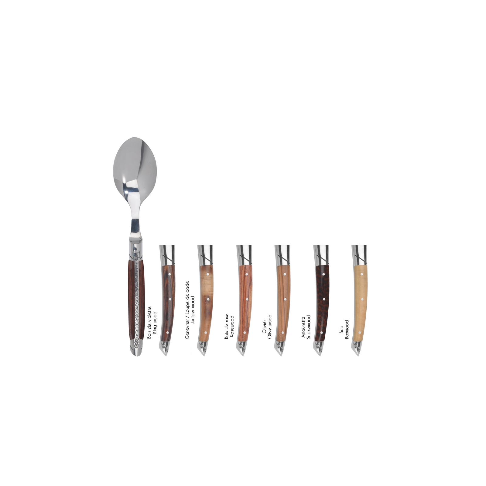 Handles are in boxwood, olive, juniper, rosewood, kingwood, snakewood, tuja, pistachio, birch wod, ebony, marble wood and wenge.