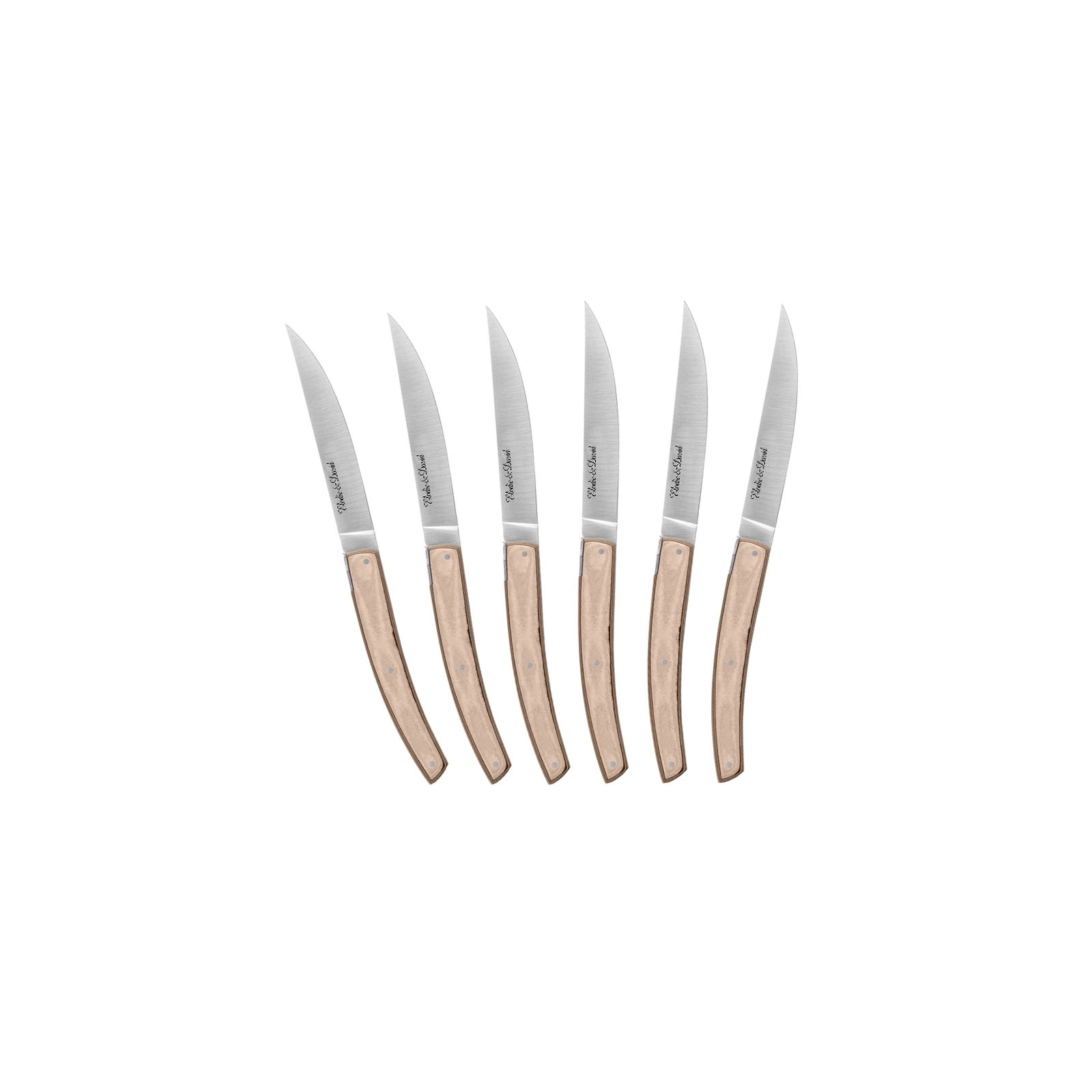 Cette option de gravure est valable pour 6 couteaux du même coffret, avec le même marquage sur chaque couteau.