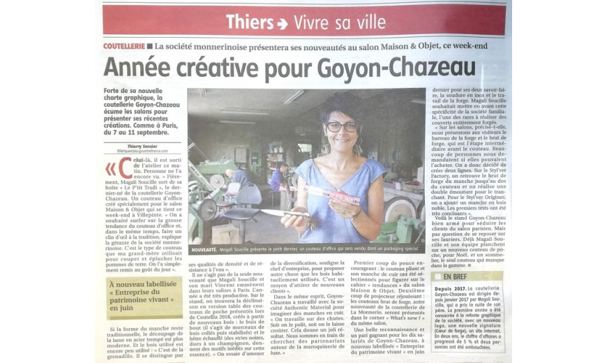 LA MONTAGNE : Année créative pour GOYON-CHAZEAU