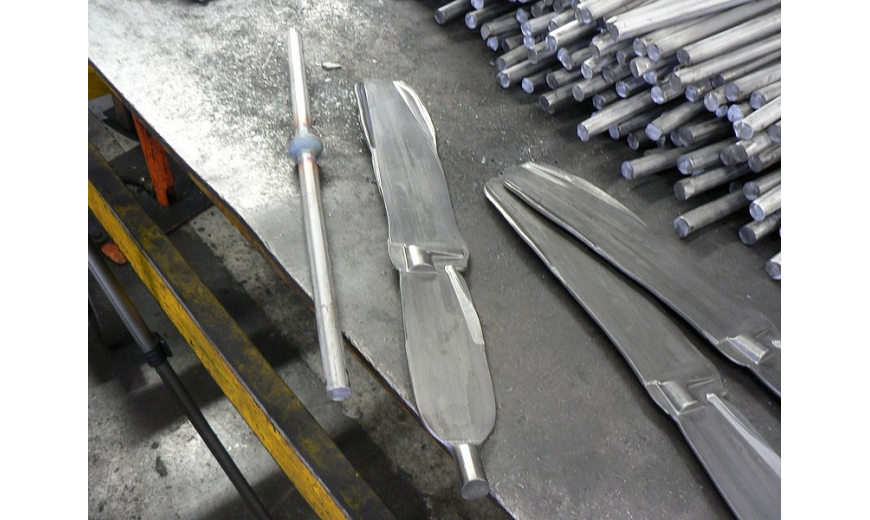 Cette pièce forgée sera ensuite découpée. Cette étape déterminera notamment la forme de la lame et précisera les contours du manche.