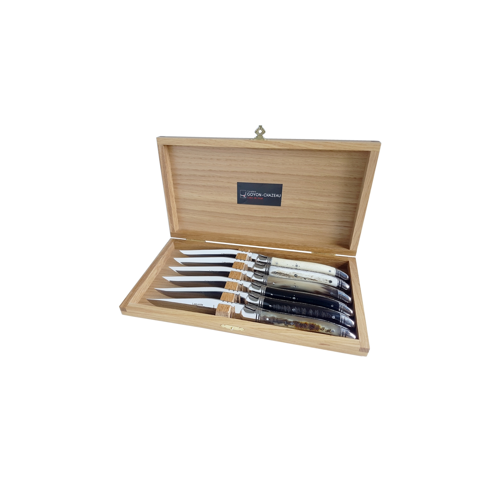 Cet assortiment est composé de corne blonde, noire, de buffle, de cerf, de bélier et d'os.